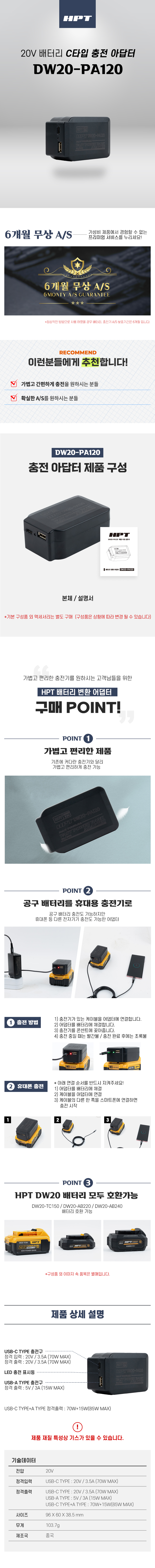 HPT 20V 배터리 충전 어댑터 C타입 충전기 아답터 DW20-PA120 디월트 호환